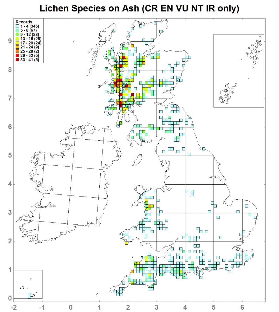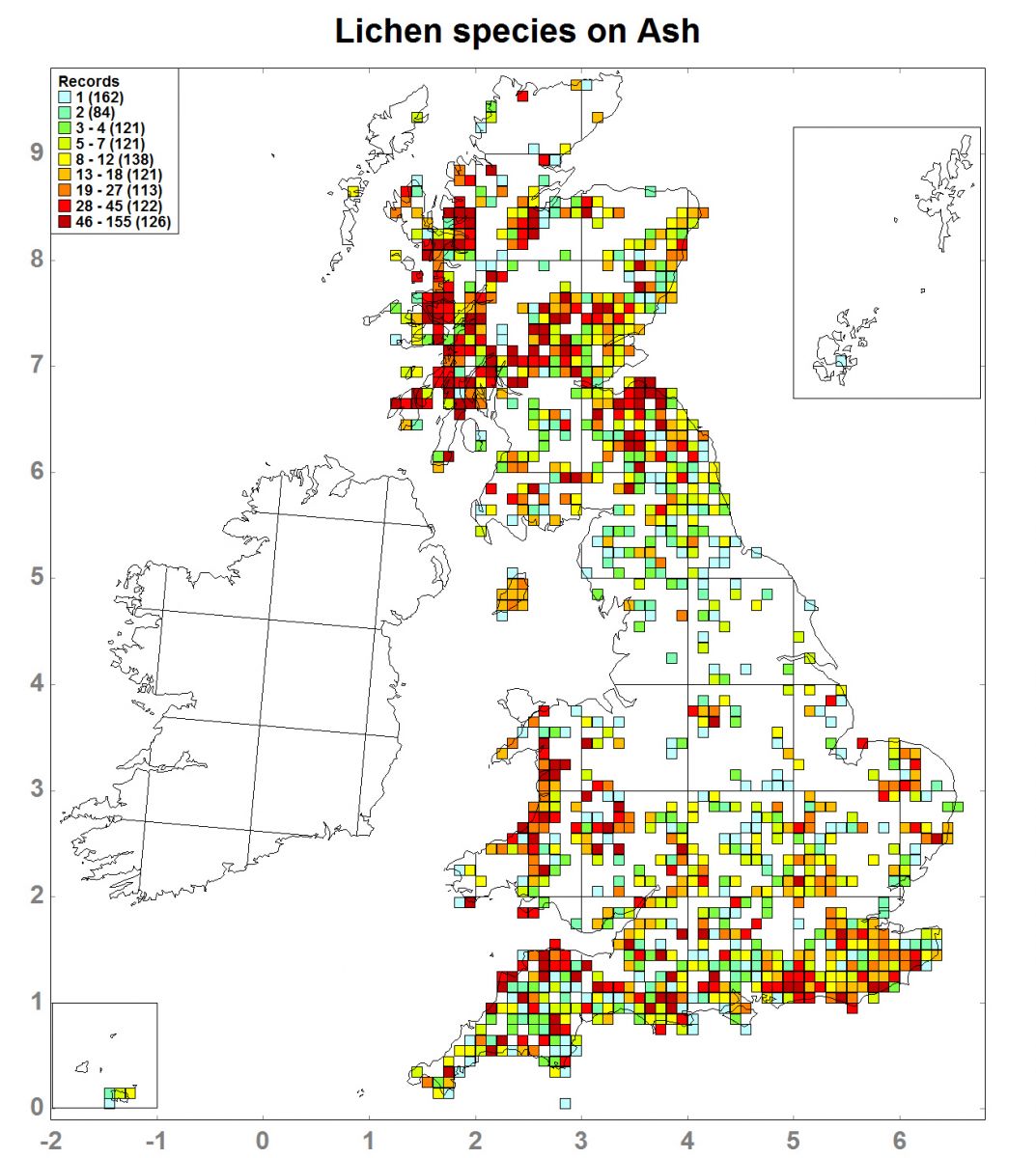 Coincident Distribution Maps of Lichens Recorded on Ash
