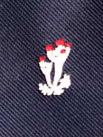 The British Lichen Society logo in three colours - black outline, silver podetia and red apothecia - is reproduced on the ties and mugs listed below.
