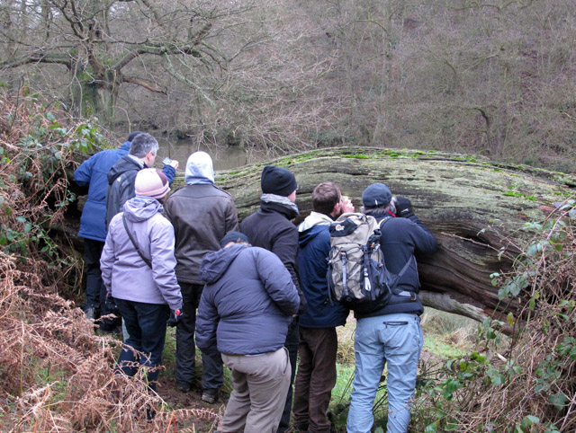 Calke Park will never be the same again. Following the BLS AGM and Symposium held at Nottingham University a visit was made to Calke Park (National Trust) by a contingent of members and guests, many from overseas. This National Nature Reserve was designated because of its high number of veteran trees. The trees themselves, the associated deadwood and the walls of the adjacent old buildings entertained the 38 attendees throughout this cool but dry winters day as an impressive record of the lichens was assembled.
